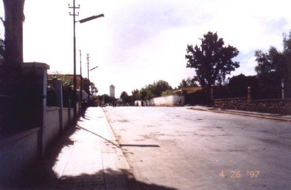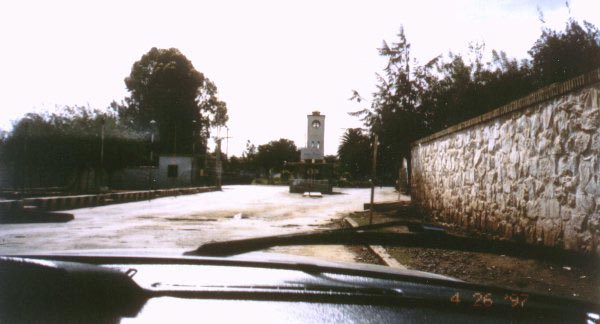 We have recieved some special photos from Boyce Cox in St. Augustine, FL. He received them from Tewelde Stephanos of California who recently visited Asmara in April this year. If you look in the lower left corner of the picture, you can see the day they were shot. They show the road leading up to the Kagnew Station maingate and a little closer view of the maingate itself. As you can see, the pix were taken from inside a car, so we're not sure if taking pictures of Kagnew is prohibited. We have learned that taking pix of military installations is forbidden. All we can say is we're excited to bring them to you. |