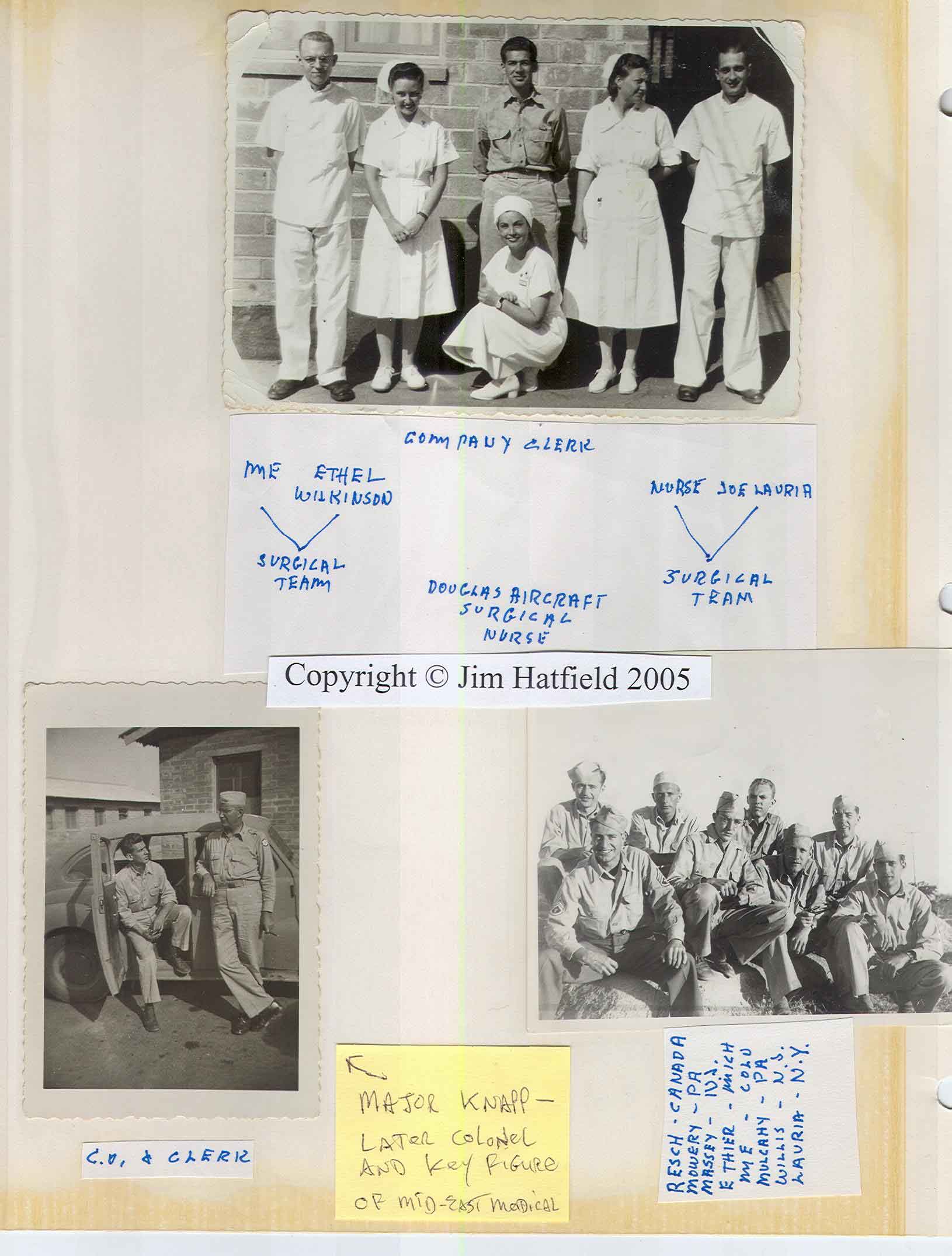 Note: The nurse kneeling in first row is a civilian nurse employed by Douglas Aircraft Company there at Gura. The rest are Army nurses, Medics, etc. Images courtesy of Jim Hatfield