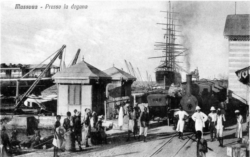 Massaua-Asmara" (Italian East Africa. Caravan of camels on railway bridge