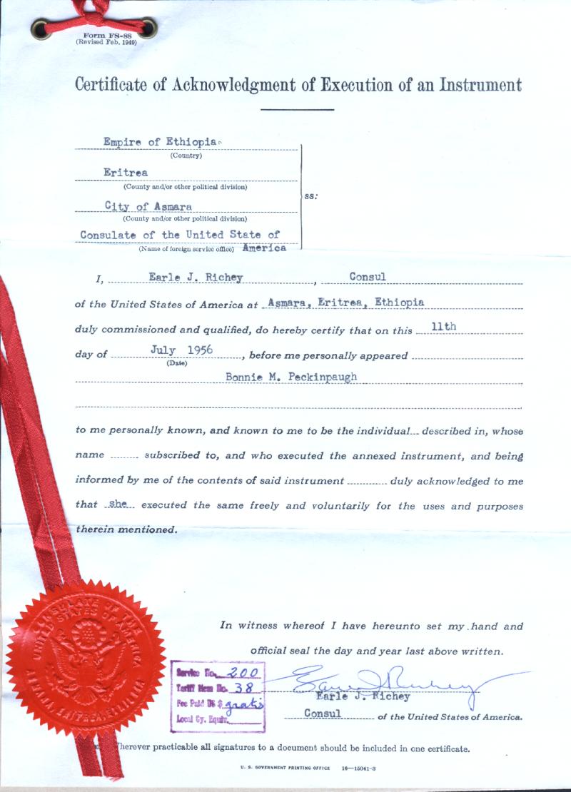 and her husband Gene Peckinpaugh acquired during their tours at Kagnew.