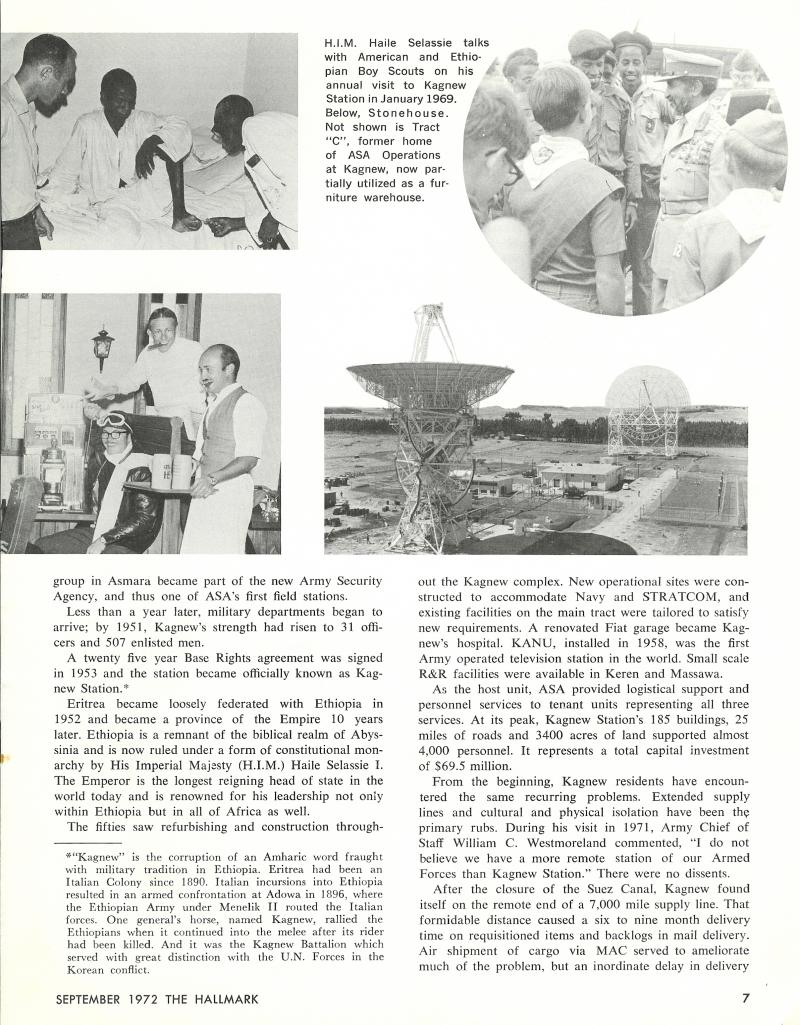 Hallmark." This contained the article "ASA Leaves Kagnew" and was written by