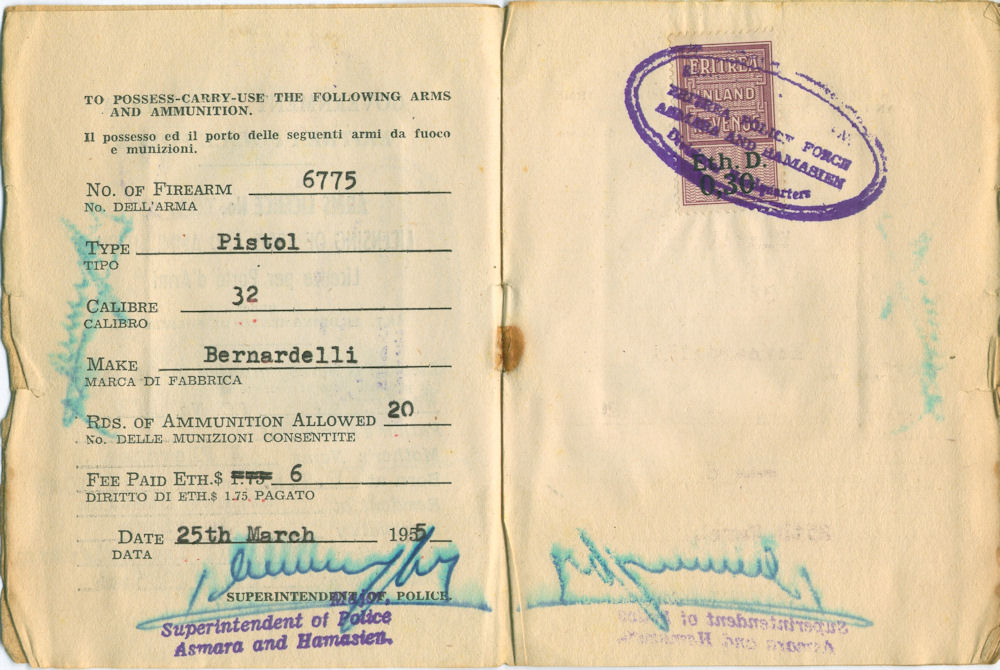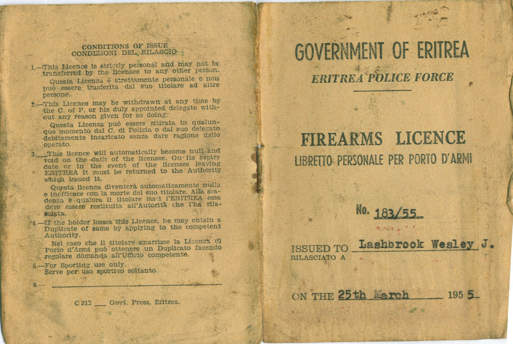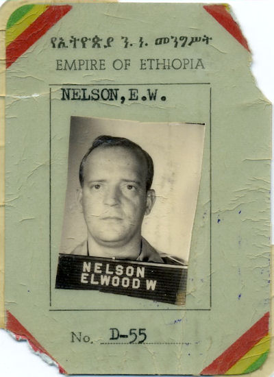 | Dave Nelson's Ethiopian ID card. [Front] | [Back] (courtesy of Elwood "Dave" Nelson) |