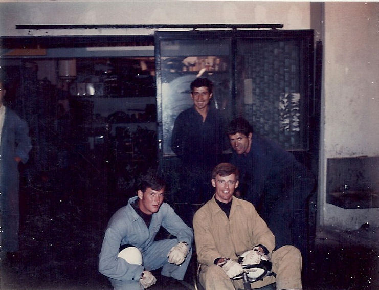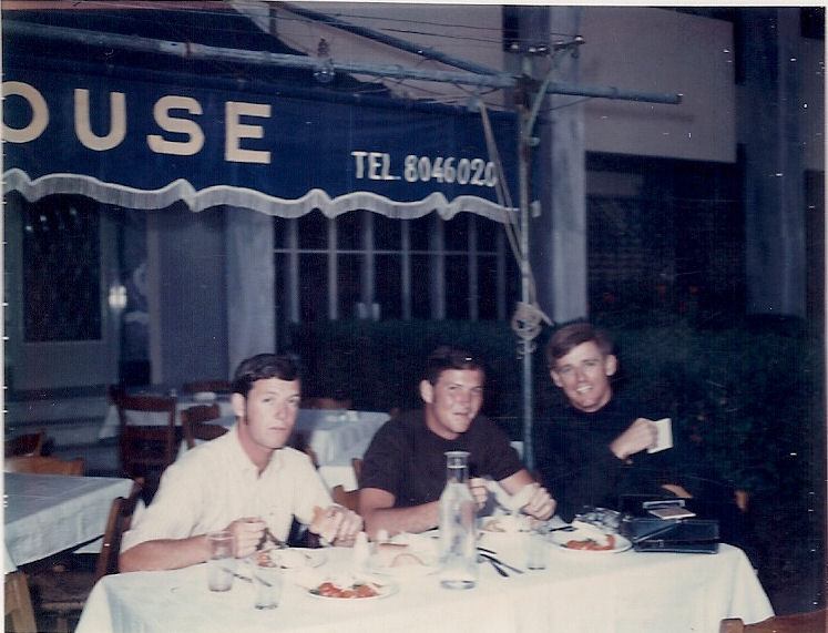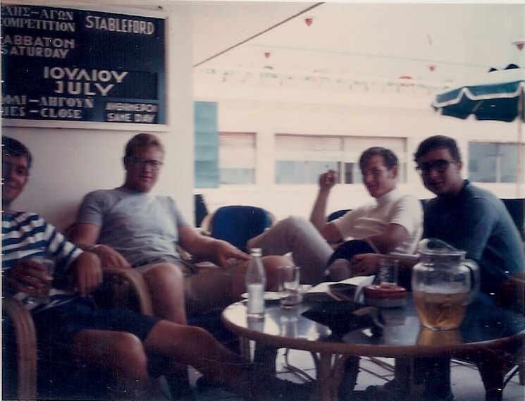 | Athens, Greece, 1969, Kagnew Station Golf Team. (1) Tim Downey, Kent Seery, Rich Harris and Greg Johnson. Glayfada Golf Club. (2) Rich Harris and Bob Petersen. Restaurant in downtown Athens (3) Tim Downey, Rich Harris and Bob Petersen. Same restaurant at night after practice. (4) Back Row-Jack McLaughlin, Bob Antuna, Kent Seery, Rich Harris, Gary Schwieger. Front Row-Bob Petersen, Tim Downey and Bill Hybl. (5) Rich Harris and Bob Petersen. Go Kart track in Glayfada after practice. |