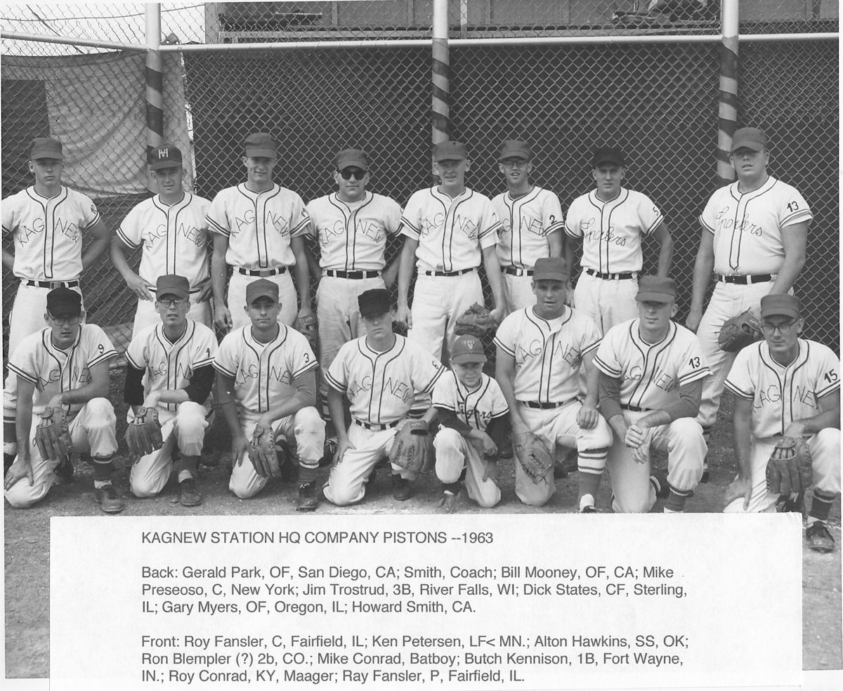fast pitch softball team that won the league championship. (courtesy of Ray Fansler HQ CO 62-64) |