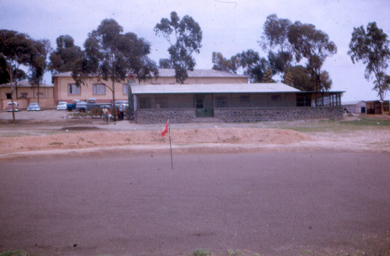 | For those of you who played golf, you'll recognize this picture sent in by Walt Sandell. It's looking across the 18th green (green???) with the club house in the background. Unfortunately, it no longer looks that good, as this picture Ed White shares from his trip back in 2001 shows. |